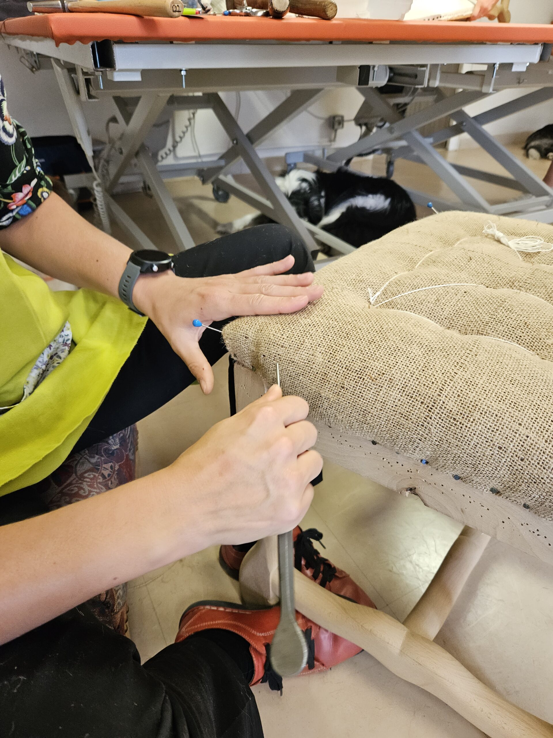 Depuis 2020, Au Petit Atelier est également un centre de formation. Certifié Qualiopi depuis mars 2022, il permet aux stagiaires de bénéficier de financements (CPF, Pôle emploi, transition professionnelle) pour se former à la tapisserie d’ameublement, dans un cadre artisanal et personnalisé.